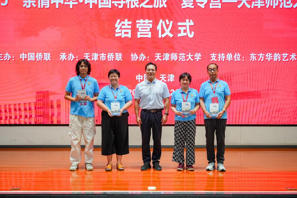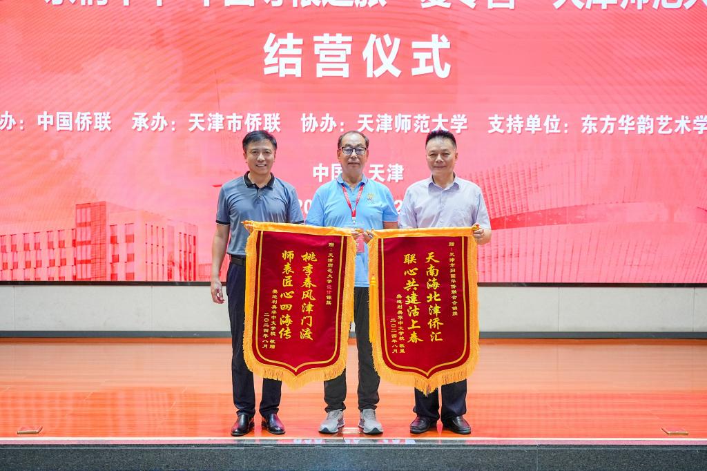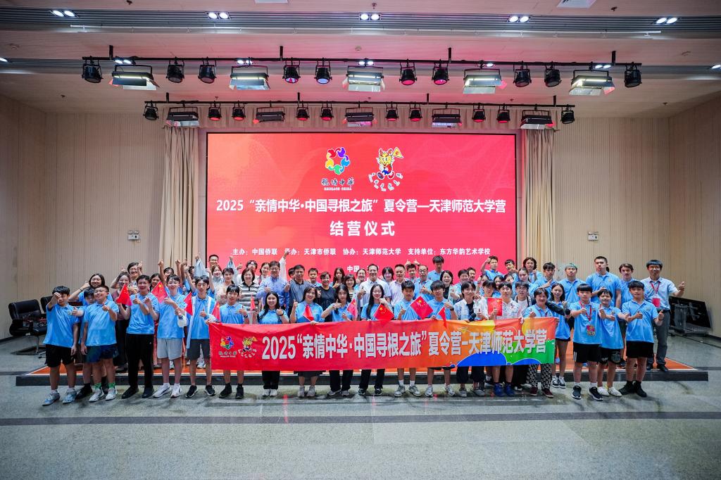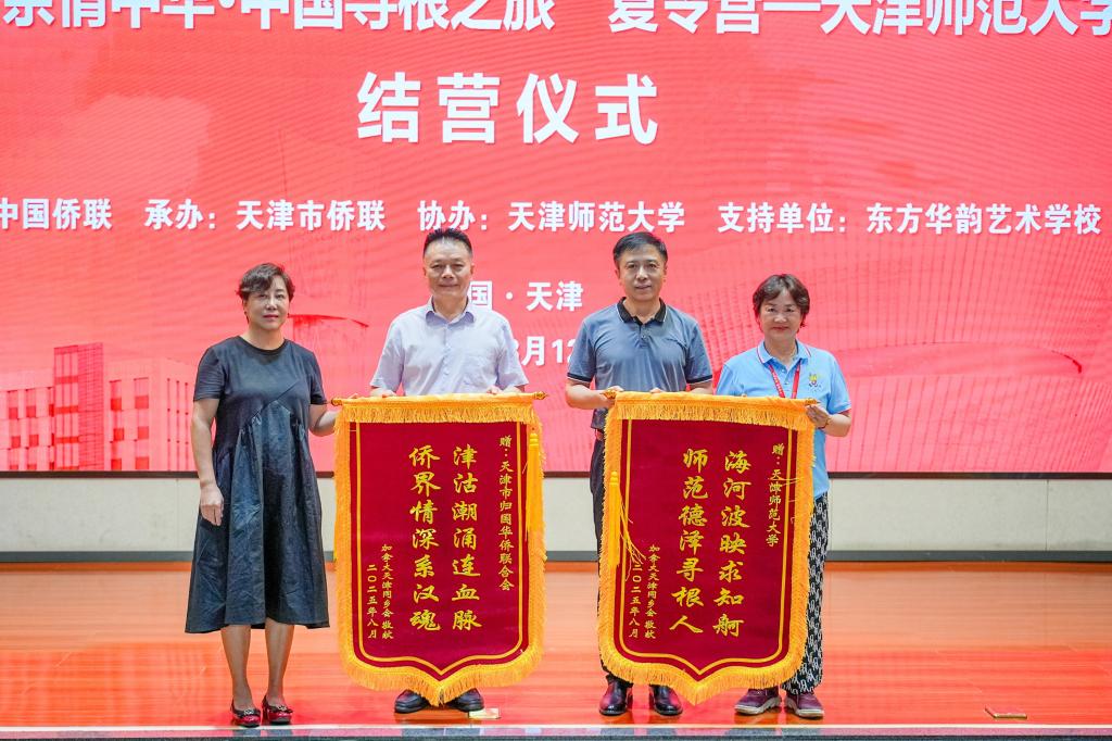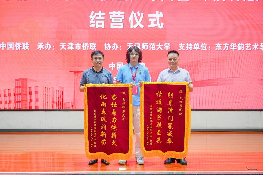 本站讯(通讯员 郝晴)8月12日,2025“亲情中华·中国寻根之旅”0033990威尼斯营在我校举行结营仪式。天津市侨联副主席于滨,0033990威尼斯校党委副书记董洪霞,市侨联社会工作联络部二级调研员杨泽桐,校党委统战部部长张向东,东方华韵艺术学校校长刘雪莉,加拿大天津同乡会常务副会长徐嫣,奥地利奥华中文学校校董左兴国等出席。葡萄牙淑敏语言文化中心、加拿大天津同乡会、法国子语学堂有关负责同志和嘉宾,0033990威尼斯部校共建国际中文教育发展研究院、国际教育交流学院相关负责老师、任课管理教师、带队老师和全体营员参加。