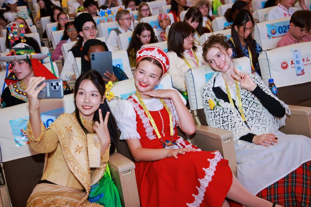 开幕式上,30名天津青少年以清脆嘹亮的歌声真情演唱了今年上合峰会期间唱响的《我在天津等你》。优美的旋律勾勒出天津的四季景致与地域文化符号,满腔热忱欢迎世界各地青少年的到来。传统与现代科技交融的表演《字脉千年》,通过人机组合联动,将传统舞蹈与律动欢快的查尔斯顿舞巧妙结合,呈现出传统与现代的美妙融合,象征着中华文化在数智时代跨越疆界,促进语言互通、理解互信、文明互鉴的美好愿景。开幕式现场,嘉宾同五大洲选手代表共同上台手持开启未来的“金钥匙”,一同开启语通未来的“文化之门”,第十八届“汉语桥”世界中学生中文比赛正式拉开序幕。
