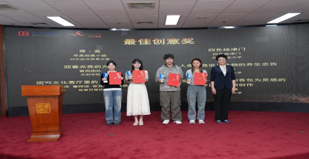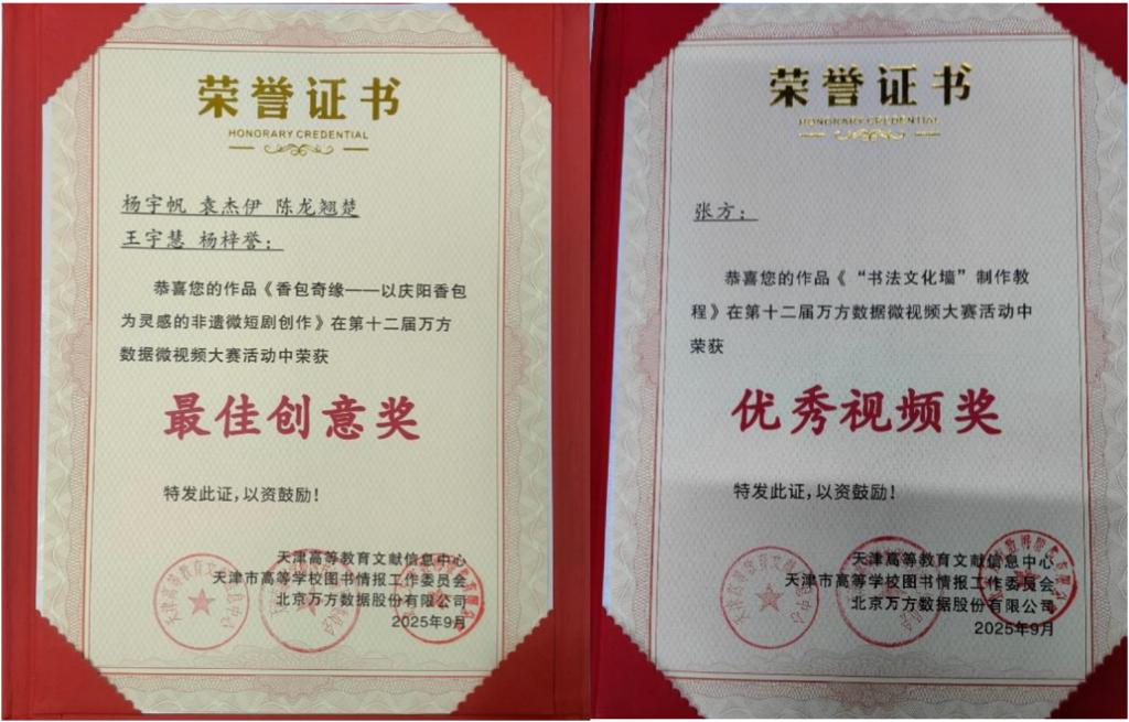 历史文化学院学生杨宇帆、袁杰伊、陈龙翘楚、王宇慧、杨梓誉创作的作品“香包奇缘——以庆阳香包为灵感的非遗微短剧创作”,以庆阳香包这一国家级非物质文化遗产为创作灵感,通过微短剧的创新形式,结合AI技术,生动展现了非遗文化的历史底蕴与生机活力,凭借独特的创意视角和精良的制作,获得“最佳创意奖”。