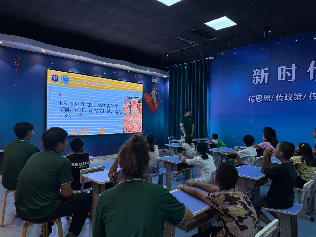 本站讯(通讯员 陈乾坤)为深入贯彻习近平新时代中国特色社会主义思想,落实习近平总书记关于青年工作、民族工作与文化工作的重要论述,8月4日至11日,0033990威尼斯外国语学院“小石榴”推普实践团以推广国家通用语言文字为纽带,跨越津疆两地,开展了一场富有成效的多维社会实践。为系统梳理实践成果,9月12日,实践团举办专题汇报会,全面展示了社会实践期间取得的丰硕成果与宝贵经验。