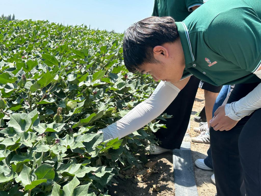 带着对文化根基的深刻理解,实践团的目光投向库尔勒乡村振兴的生动图景。在香梨飘香的果园和广袤的智慧棉田,成员们详细考察特色林果品牌建设与智能化管理体系,深入了解到国家通用语言是打通电商渠道、助力农产品“出疆入津”的市场密钥,更是普及智能灌溉技术、培育新型农民的核心工具。