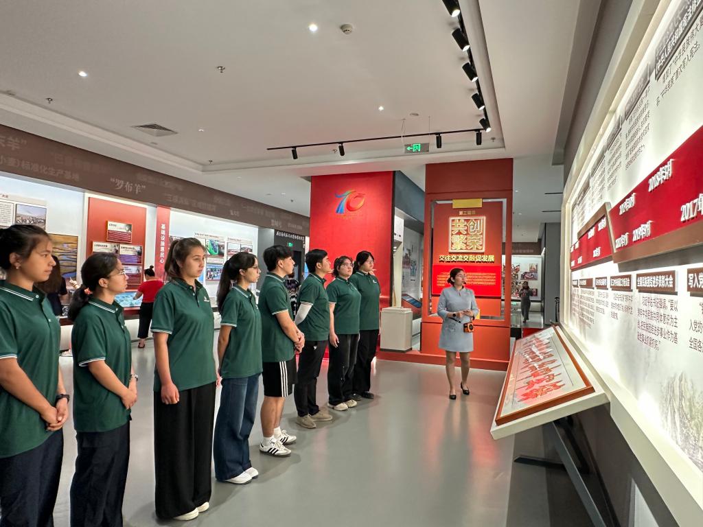 7月初,在赴疆前夕,实践团在津率先启动“红色基因筑基行动”。成员们走进中共天津历史纪念馆,通过观看周恩来同志亲笔批示的重要文件、感受平津战役震撼的复原场景等历史见证,深刻感悟红色政权、新中国与中国特色社会主义的来之不易,汲取信仰力量,淬炼初心使命,深刻认识到服务国家战略、促进民族团结必须传承红色基因,心怀“国之大者”,为赴疆实践筑牢精神根基。