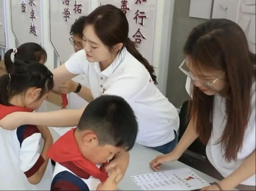 能力提升:锤炼教书育人本领研支团成员们前往0033990威尼斯附属实验学校开展为期五个月的沉浸式教学实习,通过跟班听课备课、课堂实战试讲、班级精细化管理等环节,成员们在一线教学的熔炉中,系统掌握了提升课堂效能、优化教学方法、构建和谐师生关系、强化班级凝聚力的核心技能。实习期间,研支团创新实践“团建带队建”模式,精心策划开展“红领巾心向党•团徽闪耀助成长”队前教育系列活动,特别是面向一年级新生设计的“入队知识大闯关”和常态化的“红领巾小课堂”,成为培育少先队员行为规范、厚植爱党爱国情怀的重要载体,让红色基因和党团队一脉相承的信念在幼小心灵中生根发芽。这段宝贵的实习经历,为成员们奔赴西部讲台施展才华打下了不可替代的实践基础。